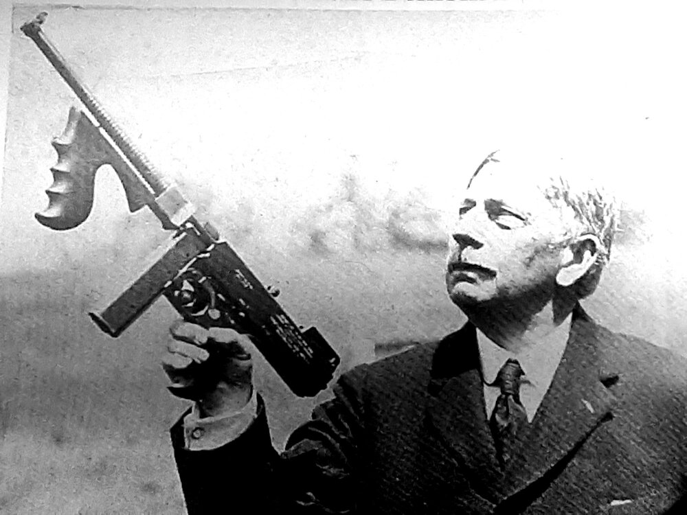 May 10, 1922 publicity photo of John T. Thompson showing off his smg complete with highlighted markings. If it was good enough for the Brigadier... -