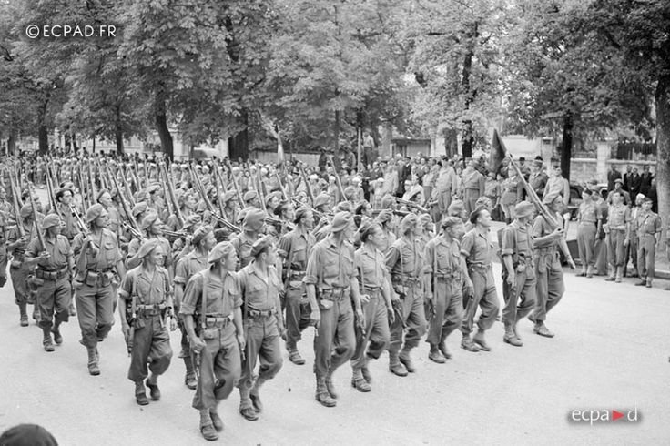 Today, I came across this picture, that i had not seen before. The 13th Half Brigade of the Foreign Legion, (13eDBLE), fought right through 2nd World War with the Free French Forces from 1940. They were based in England for a period of time, following their evacuation from Norway, following the battle of Narvik. In this picture, they are parading in Dijon, France, in Sept. 1944. The first ranks are armed with M1A1's, with BARs in the rank following them.