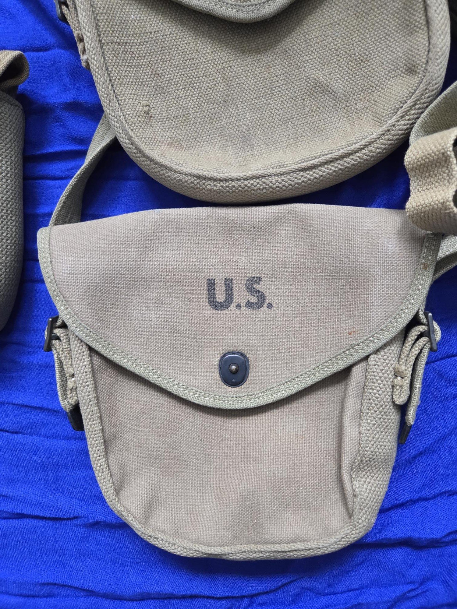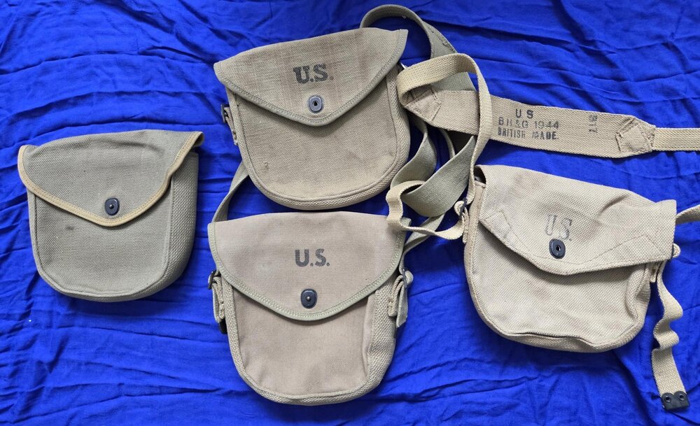 Just received a 1942 dated R.M.Co L drum pouch from the States. Over all nice condition, and it was still cheaper, with shipping from the US and taxes, than buying one in the UK. Just need to find a carry strap for it now. So that is another L drum pouch added to my collection a 1942 dated Avery.. BH&G British made 'Reverse Lend Lease' and a prewar, unmarked L drum pouch, bought from a member on this forum a while back. -