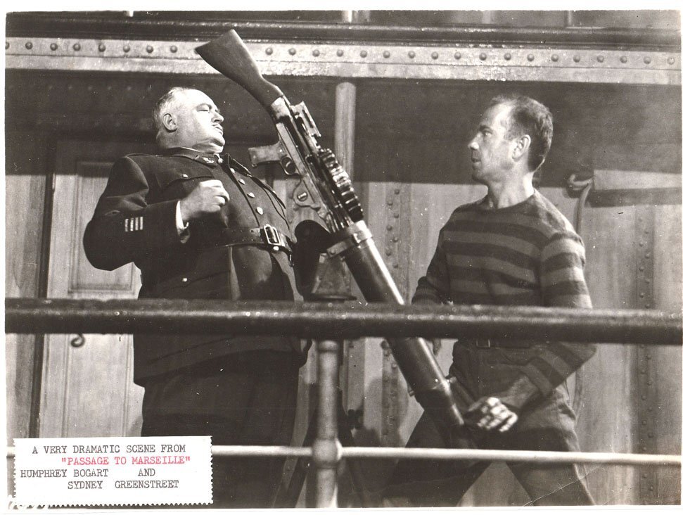 Those Lewis guns were in a bunch of films besides "Kong". Here's one in "Passage To Marseille" with Bogy. I think that there was also one in another Bogy film, "Across The Atlantic". It would be nice to know what films these guns appeared in for the present day owners but I don't think that the records still exist. Photo from my personal collection. -