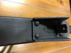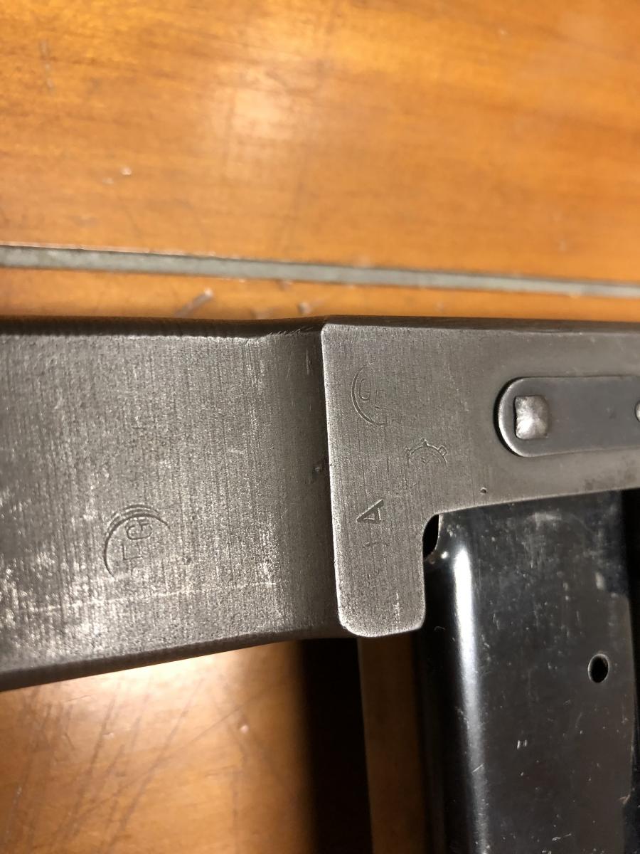 I picked this up about a month ago. Not my first MG but first Thompson. I was looking for a 1928 originally however the M1A1 seems to be a very robust & simple Thompson. I am quite happy. Runs great and is more accurate than the operator. Someone appears to have unsuccessfully attempted to rebarrel it with a pipe wrench. Barrel is not original I assume since it is blued and the balance is parked (or was at one point). The front sight ring had the pin hole drilled crocked and oversize. I made a pin and pressed it in to set the sight at 12 o'clock. I'm assuming it was rearsenaled at some point based on the SAA stamp on the stock. I am thinking it was probably refinished at some point when it was rearsenaled, however, the Auto Ord markings are deep and crisp. There are thin stamps opposite the ejection port that appear to be proof marks. After the weather turns cold I am likely sending her off to a specialized Thompson Smith to rebarrel. I emailed a couple and did not hear back.