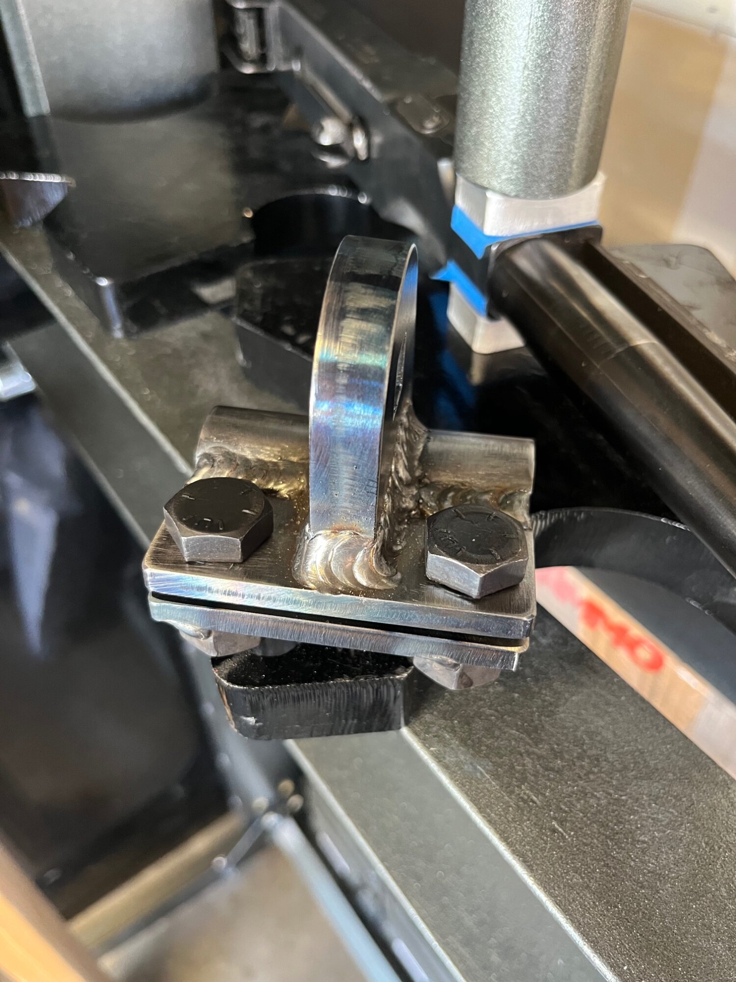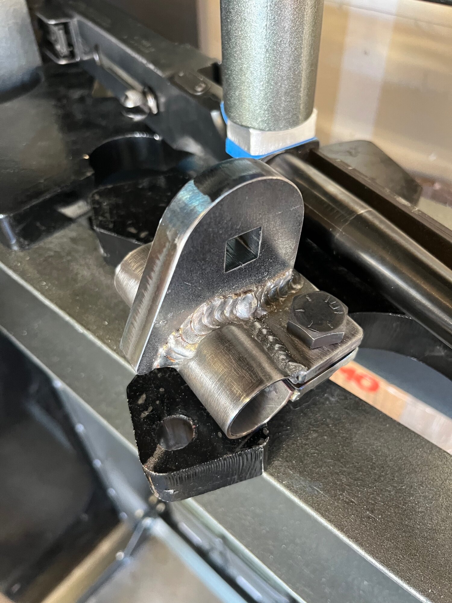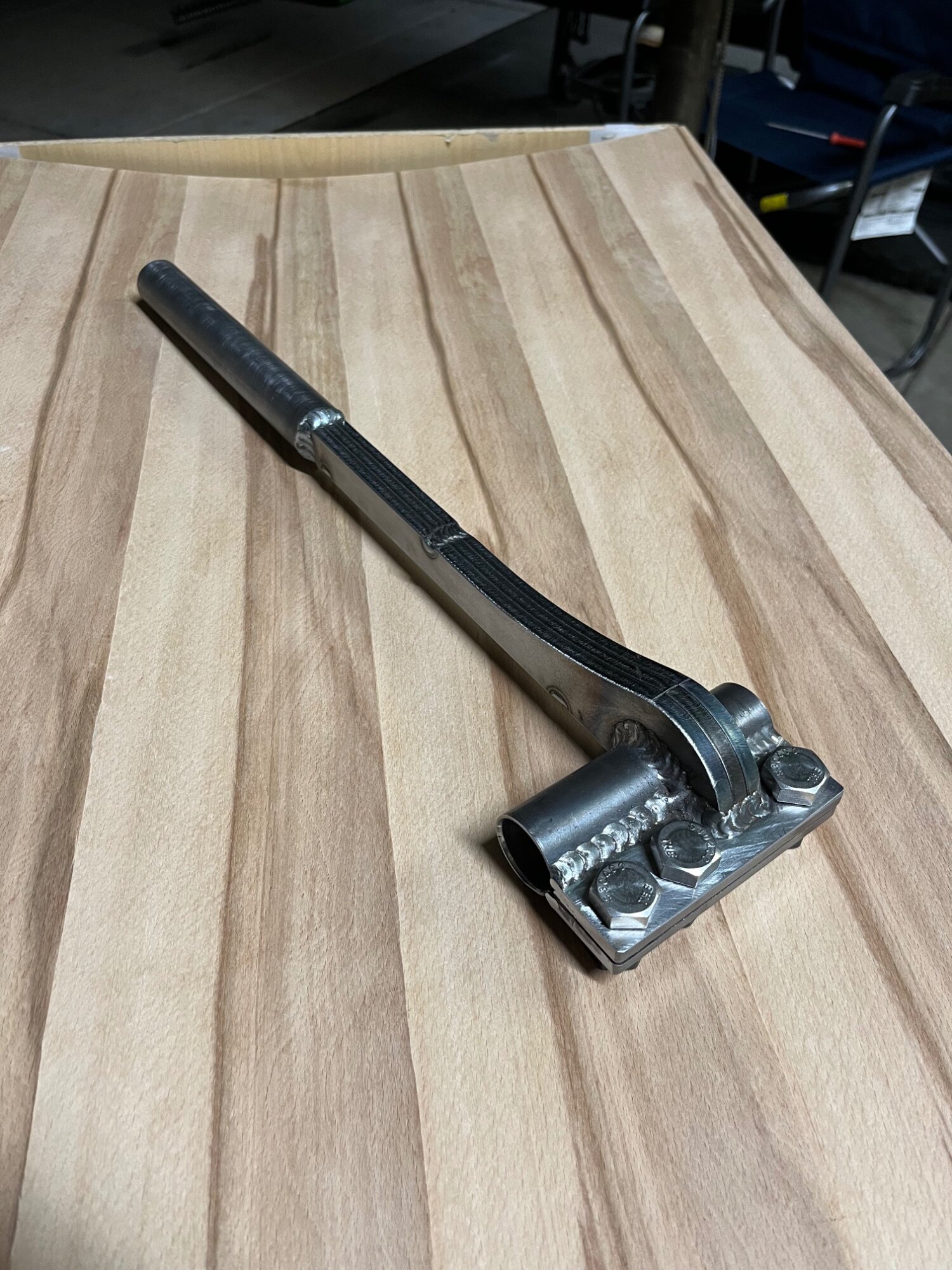 2. I also began welding the nuts to the bottom side of the wrench so that only one box wrench or socket is needed to tighten the clamp.