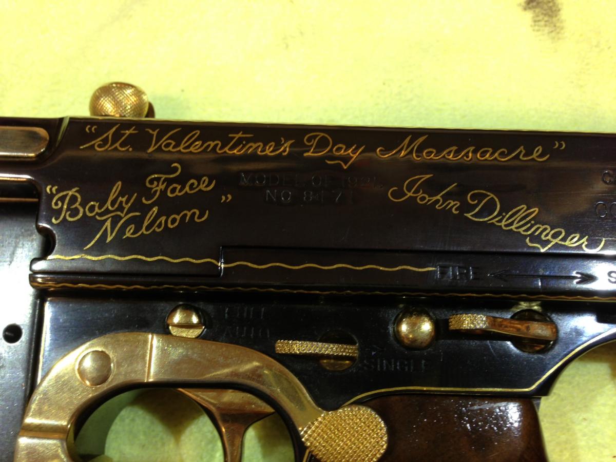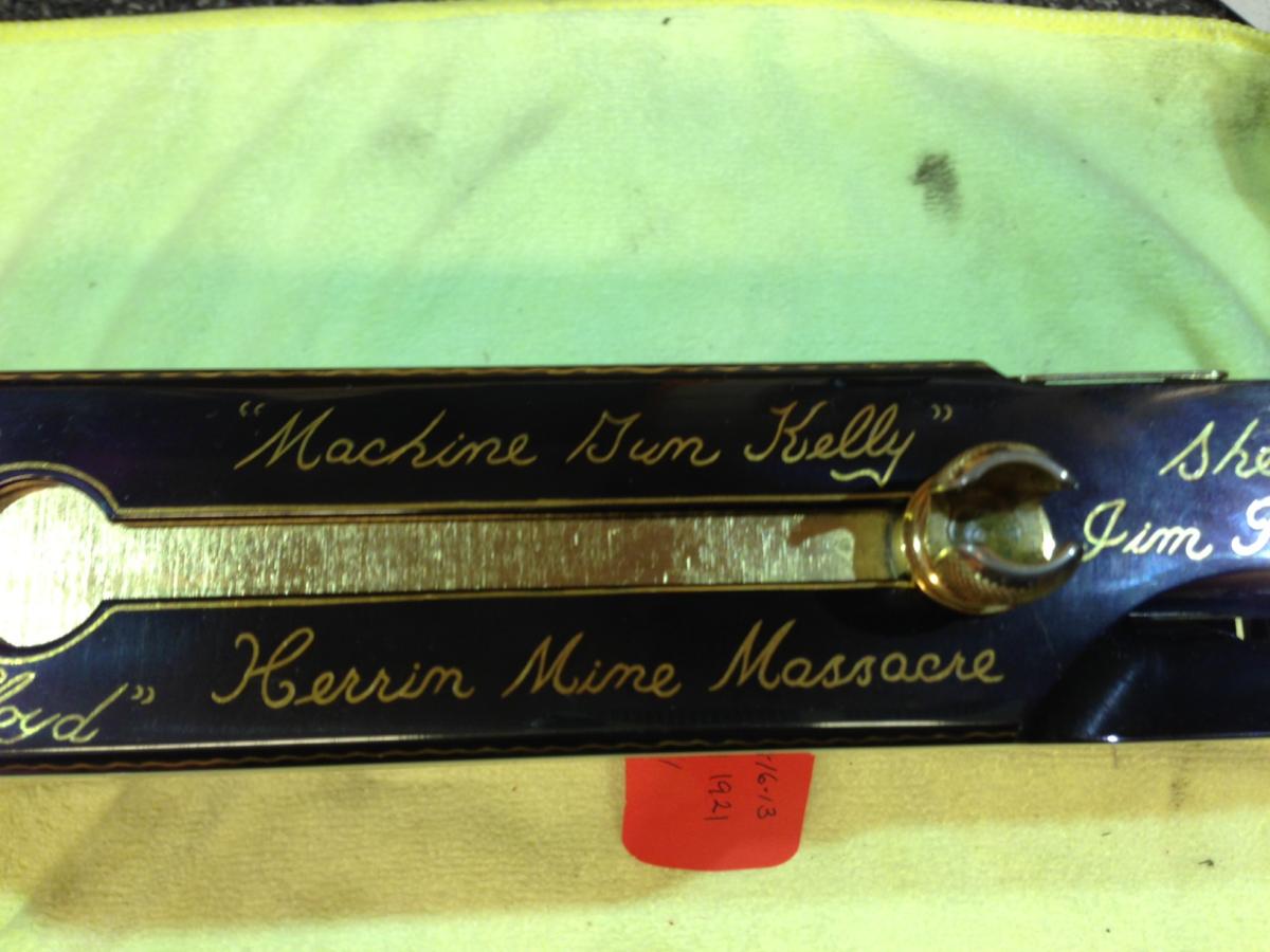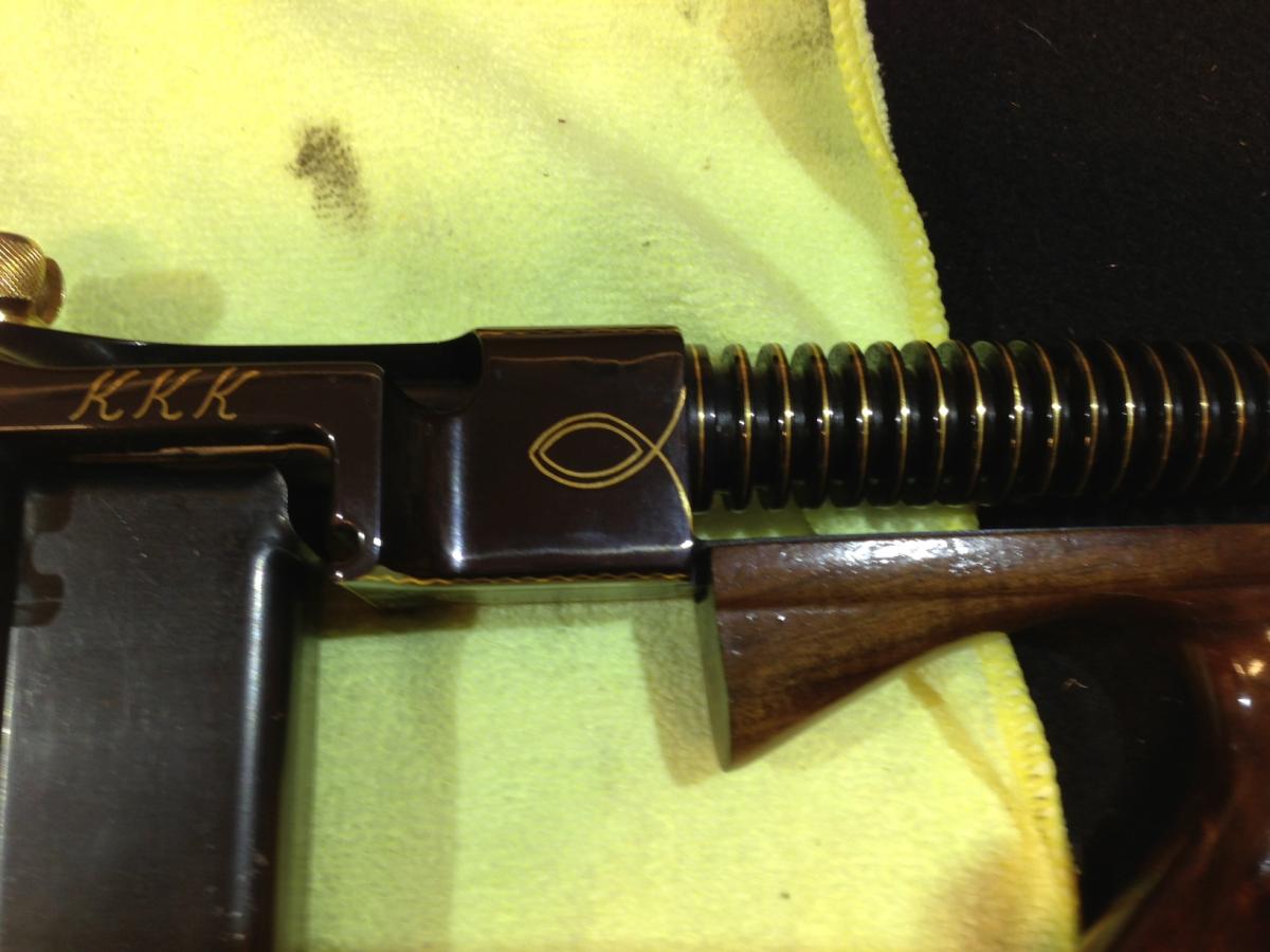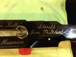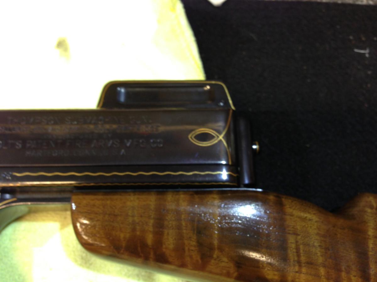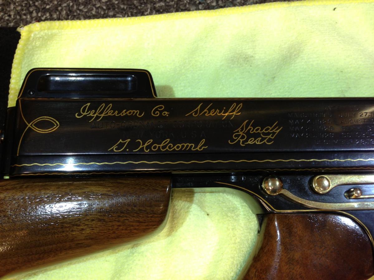 I am assisting Warren Kreiser 's widow with the disposition of his Thompson related collection. With David Albert's permission, I am posting items on this forum before seeking other buyers. Warren had 3 Colt's remaining at the time of his passing. Two have sold. This ad is for the remaining Colt. Warren had this gun presentation engraved to commemorate, among other things, the Bloddy Williamson Massacre. All parts are Colt, excpet the buttstock and hardware. I am having trouble determining a reasonable asking price for this gun. so, If interested and you want to make an offer, please email me at Dlansky@dickinsonwright.com. thank you for looking.