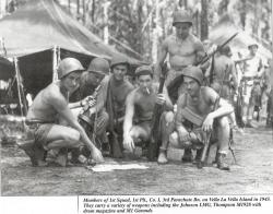 Paramarines mid '43. Came across this and scanned for the board. Savage, Colt?? I don't think the Marines were getting Bridgeports or Savages in 1941-2??? I have read on numerous occasions the Reising was pulled from front-line units after Guadalcanal (late '42) and "replaced with the Thompson SMG." Never read the make or model though. More than likley a Savage or Bridgeport depicted. Would love to have the opportunity to own a USMC Colt 21/28.