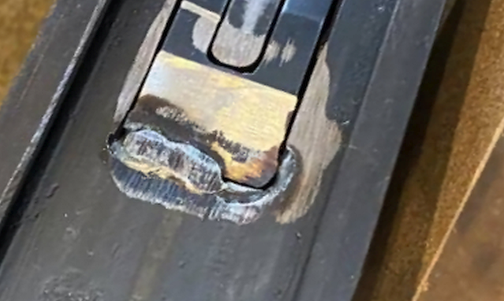 I was shopping for replicas, and I found this piece. I was going to skip on by, then the underside of the receiver caught my eye. Two welds seem to be keeping the SMG bolt from moving. Getting the photos to post, I noted the true dewat artistry, a weld on the trigger control group. Well that settles it, two welds in the receiver and one on the trigger control group, perfect! It does seem strange to me to leave the original parts in the gun, unless it was dewatted so long ago that it didn't matter. This seems like a much more efficient way to deactivate a gun whilst preserving history..... On one hand, not too bad a price compared to a totally messed up gunbroker display piece, The seller ironically, or unironically has a 99.8% satisfaction index. I would definitely only give him one star from my federally provided computer. The reason I posted this was more, how long ago was it that this was "normal" anywhere? -