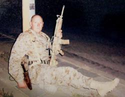 I hang out mostly on the Thompson forums but thought I would post a few pics of one of the couple of M14s we have in the armory for the color guard. As you can see the only demil is some solder on the bolt face and a rod jammed in the barrel. Rifle appears in excellent shape. I doubt this rifle saw much use. The Marine holding the rifle is one of the units Armorers. He is GTG, however, I had to show him a thing or two about the M14. What is interesting is that the disconnector is the M1 rifle type without the extended tab for the select fire option. I thought all M14s had that extension regardless if it had full auto capability. Enjoy!