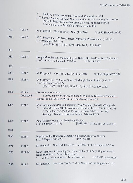 Dear forum colleagues, Like many here, I am a collector and enthusiast of Colt Thompson magunificas! I've been thinking for a few days now.... What should be the whereabouts of the Thompson with serial number #1986. Is it in a museum? Is it from a collector? Or was it lost? This serial number has nothing special, other than being the year of my birth. But that led me to search... It was then that I looked at the book Colt Thompson Serial Numbers, by Mr Gordun Herigstag. I was able to find out that Thompson #1986 was originally shipped to Mexico. However, after being DESTROYED, its pieces would have returned to the USA in the "World Shooters" of Phoenix, Arizona. I was extremely disappointed to hear that it had been destroyed! And at the same time I was very happy to know that its parts would be in the USA. I ask you, my forum colleagues... Do you know the whereabouts of this piece? Is the owner of this piece here on our forum? It would be really cool to be able to see some photos of these weapons. Knowing how she was destroyed... Seeing how she is today. Thank you very much for everyone's attention