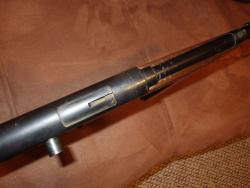 Hey everyone, My great uncle (US Navy and police officer) left behind a mutt of an Ingram M6. It appears to be a military style since it has the ring for the strap on the stock, the smooth barrel as opposed to the finned barrel, but it has a hybrid forearm grip, it looks like a combination of both military and police models. On the base of the barrel it reads: Ingram Patents Pending, Police Ordinance Company, Los Angeles California, M6 Millitary, 1128. I will add some pictures so you can see what I mean by its similarities to both designs. Just trying to gather info. From the looks of it either the base of the barrel was sealed up on purpose or thats a few lead rounds that mushroomed together and got jammed before the rifiling starts. ---- The story my Great Aunt tells goes: My great uncle bought it off a guy who ended up getting arrested for selling to (Cubans?) when my uncle took the gun to get fixed (not sure what he was fixing or if this is why the forearm/grip is different) he was driving on the parkway with it on his back seat, The toll collector saw it and radioed ahead, when he got off the parkway he was then arrested since he forgot all of his papers and id's at home. All his buddies at the station laughed at him that following Monday for getting temporarily arrested untill he proved he was a cop.--- He may have been going to get the squib load jammed in the barrel fixed but never bothered after this ordeal and it's been in his attic since 1981? well, as far as I know I wasn't around till '85 -- Pardon any error in terminology as I only recently aquired my FFL and I am brand new to shooting and collecting. Thanks guys
