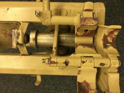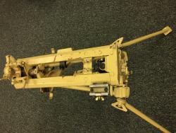 Weve had this tripod for many years. I understand that there are not many out there. It is a combination of original paint and what appears to be a desert tan application somewhere along the way. It appears to be a 1940 manufacture date. It has the Waffenamt code marks on it. The original paint work is seen throughout the tripod. The manufacturer marking appears to be a triangle with S562, Metallindustrie Schonebeck A.C. Date appears to be 1940. There are Waffenamt code marks on some of the small parts. Indicative of an early manufacture. The search fire mechanism is a 1942 axx code of Linden & Funke KG, Iserlohn. Most likely an addition later on. The pads on the front leg appear to be worn or may have been a field replacement. I might remove some of the paint on the main body to get a clear view of the triangle code. But, I can see it in some of the detailed close ups. I understand that obtaining a fair market value is difficult. Any input is welcome.