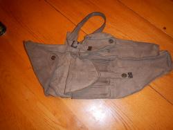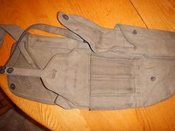 Bought this at a auction of a local vet. It looks like an unmarked Russo case. It has obviously seen some hard use, if it could talk. This came in a box with some other stuff that I wanted for my M1. Any idea what its worth. It has a battle field affected repair on the flap with a steel probably foreign replacement pin. I had it looked at by a local guy that authenticated that and several other items but he would not give a price as he had only every seen one, the one he was holding. There is numbers under the flap that correspond to something, gun?,motorcycle?GI?. The bag is approximately 24” long. Just trying to get a ballpark value.