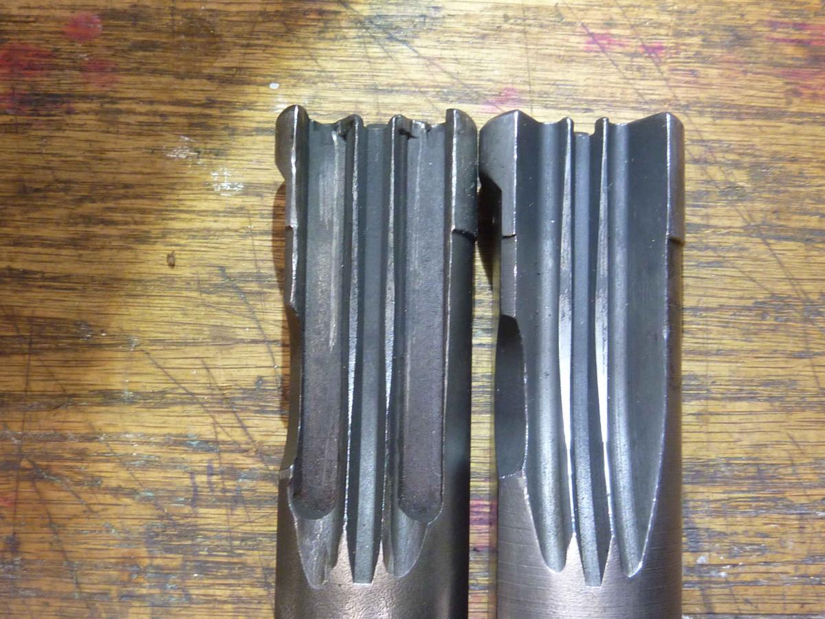 skoda Posted November 16, 2020 Report Share Posted November 16, 2020 (edited) Here are few pictures that should help with the modifications. I measured the channels that were milled into the bolt and they are 6.3mm (1/4 inch) wide. So you just have to clamp the bolt into a vice and mill the two grooves for magazine clearance. The magazine needs the upper tab ground down a bit to fit into the magazine housing and around the STEN ejector. The picture will give you a start and then just do a fit trial to see where and how much more you need to grind to make them fit. I run mine in 9mm with the 7.62x25 setup. It's much easier to load the magazines. Edited November 16, 2020 by skoda Link to comment Share on other sites More sharing options...