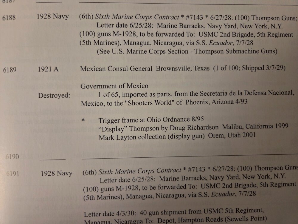 dalbert Posted April 26, 2015 Report Share Posted April 26, 2015 http://www.sturmgewehr.com/dalbert/MGBoards/Gordon-Detonation_Web.jpgGordon Herigstad firing a Colt Thompson at a shoot in Ohio in 2006. The shooter to his left is Warren Kreiser. Both Thompson aficionados pictured here passed away recently. I'm starting this as a pinned post in memory of Gordon Herigstad, the author of Colt Thompson Serial Numbers, who passed away on 4/23/15. This post will become a repository for information on Colt Thompson serial numbers that were not featured in Gordon's books, because he left us too soon. There are thousands more Colt Thompsons that remain to be documented. Many were consumed over the almost 100 years since their manufacture, but the iconic firearm has an uncanny way of surviving, and resurfacing around the world for us to wonder about and discuss. I don't have Gordon's latest book yet, and I'm away from my 4th edition of his book at the moment, but I'm pretty sure that the recent discovery of # 11410 in Germany was not documented by Gordon, so it will be the first entry below. This post will change over time, and I'll leave it open, in case anyone wants to add to it. Any new serial numbers that are added in other posts will be summarized here, similar to how Gordon listed such information in his books. Your contributions to this effort will be appreciated by anyone who appreciates Colt Thompsons. David Albert4/26/15 #936In the Imperial War Museum collection in England Purchased by the IRA in 1921Serial number is defaced, but can still be readReported by rpbcps on 7/3/17 #2373Getty Image found showing this serial number1921A configuration, well wornVertical grip broken along grip mountHas unreadable property tag attached to vertical gripReported by by member GIJive on 3/3/17 #4658Colt Thompson 1921A Serial Number 4658 is currently in the possession of a suburban Chicago, Illinois Police Department The gun appears to be in very nice conditionNo word on whether it is registered or transferableReported by DLansky on 9/4/15#5771Appears to be French contract Colt with Berthier sling swivels attachedLocated in EuropeReported by rpbcps on 7/3/17#6354 Swedish contract Colt sold in 1940Located in SwedenReported by Per Mathisen in his book, "A Thompson for Sweden: The m40," in 2017# 9283Lower assembly with 1921 buttstock and pistol gripIt is not known where the upper receiver for this Colt is, and whether it still existsFitted to late Model 1928A1 with smooth barrel and L-sightFounds in the NetherlandsReported by member rpbcps#10557Swedish contract Colt sold in 1940Located in SwedenReported by Per Mathisen in his book, "A Thompson for Sweden: The m40," in 2017 #10841Transferable MG for sale by Ruben Mendiola, Class III Dealer in Miami, FL, December 20151928AC (21/28 Overstamp)Has 2-piece actuator#11410Overstamped from 1921 to 1928, then stamped again to add "U.S." and "A1" to read "U.S. Model of 1928A1"No Barrel (Dewatted - Receiver and lower with wood and internal parts)Evidence of being submerged in a lake, probably in Austria - Has British soldered patent date magazine with it, and horizontal foregrip with British style sling swivel mounted on left hand sidePossibly one of 951 Colts purchased by U.S. Army 1939For sale on egun.de on 4/26/15#11848Appears to be a French contract 1921Photos posted in forum by member PaulsavoyCurrently located in FranceHas an L-Drum in it, with action locked in place per European deactivation standards of its location#12384Swedish contract Colt sold in 1940Located in SwedenReported by Per Mathisen in his book, "A Thompson for Sweden: The m40," in 2017 #12784French contract Colt surfaced in France: sold for $4,000 (deactivated) Matching numbers upper and lowerPhoto included in this thread, posted 3/10/16 #134291928AC (Navy Overstamp)For sale by Ruben Mendiola, August 2016 for $32,995Has Savage and WH parts in itSavage bolt in it was part of 5K rounds semi-auto test in January, 1941 (engraved with details) #13685All that is known is that it's in a New Jersey PDReported by K-9Dogo on 8/25/15Updated in late October 2015 as completely destroyed by PD (Fed into smelter) #6354 #13960Swedish contract Colt sold in 1940Located in SwedenReported by Per Mathisen in his book, "A Thompson for Sweden: The m40," in 2017 #14450Swedish contract Colt sold in 1940Located in SwedenReported by Per Mathisen in his book, "A Thompson for Sweden: The m40," in 2017 http://www.sturmgewehr.com/dalbert/MGBoards/Gordon_C-Drum_2006_Web.JPGR.I.P. - Gordon Herigstad, 1938-2015 1 Link to comment Share on other sites More sharing options...