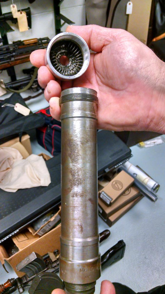 PTRS-14.5 Posted July 26, 2016 Report Share Posted July 26, 2016 (edited) Finally remembered to post the images of the Amnesty Sten can. It is the basic can like the HSMS ported barrel partial length with what appears the have been a brass/cs screen wrapped around that section toward the can cap. I would assume the end cap may not be original as it is aluminum not cs. The odd spring appears to have retained the screen and/or possibly a wipe or retaining assembly. Have not researched further but will and will get it back to all original spec for testing. I have friends in Europe getting the original drwgs to reference and will advise. PTRS Edited July 26, 2016 by PTRS-14.5 Link to comment Share on other sites More sharing options...