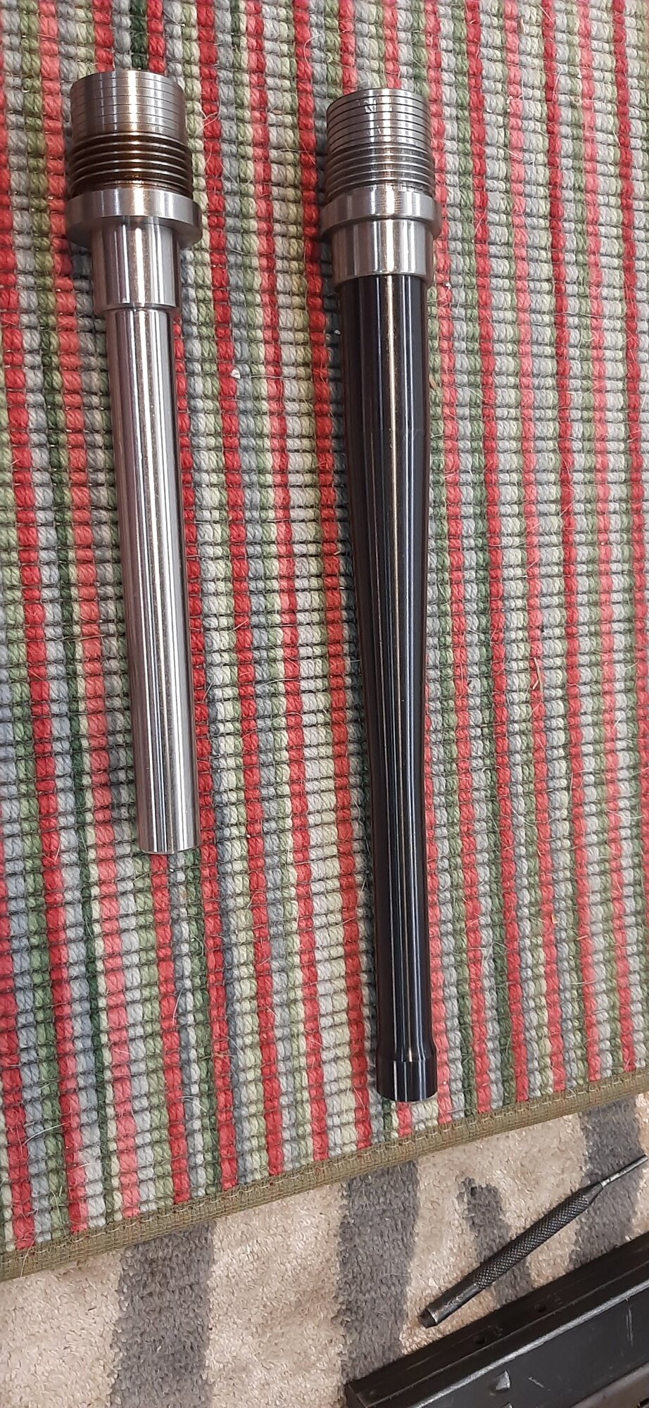 Dozer1313 Posted December 20, 2022 Report Share Posted December 20, 2022 Thought I would share some pictures of a project I started. The top one is a barrel bushing that accepts Thompson barrels. The bottom one is a barrel bushing that accepts modified Sten barrels for a 9 mm conversion. Seems impossible to find parts for these guns especially barrels. Link to comment Share on other sites More sharing options...