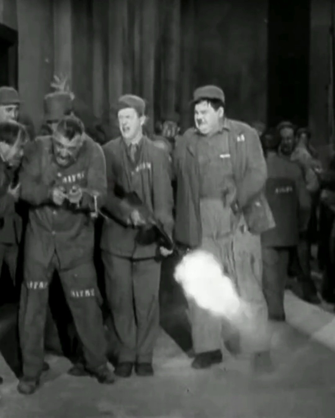 Mk VII Posted September 2, 2023 Report Share Posted September 2, 2023 Pardon Us was a take-off of the Wallace Beery movie The Big House, and the antagonist looks rather similar to Wallace Beery. The same gun, with the rather obvious attachment to make it work with blanks, seems to have been used in both. Link to comment Share on other sites More sharing options...