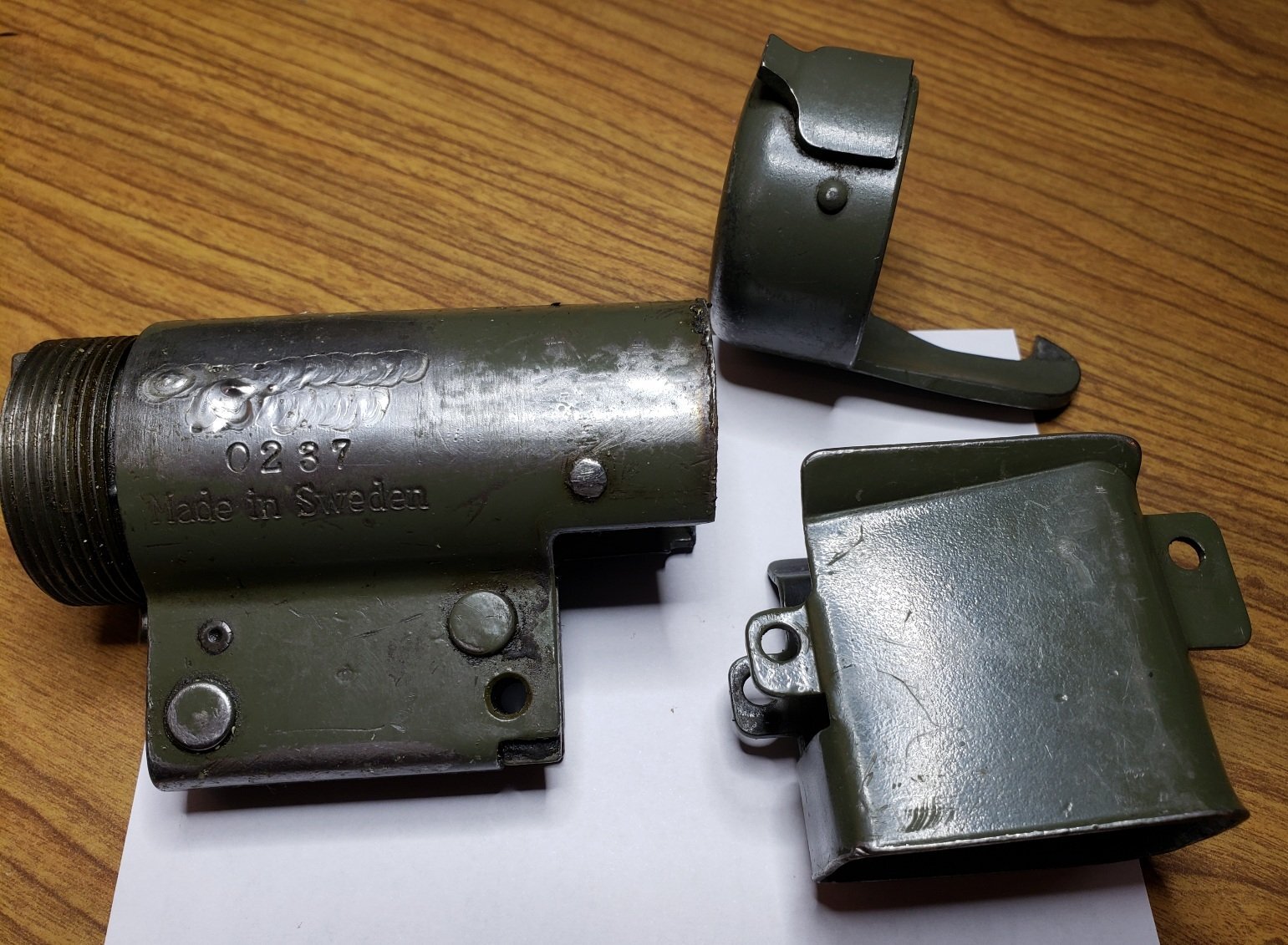 Lewisfan Posted February 14, 2024 Report Share Posted February 14, 2024 Hundreds of the select fire kits came in the last decade (time flies!). I've seen kits supplied with the clip and a lot of kits with no magwell clip. The magwells are supplied loose on all of these kits. I think the Swedes simply riveted the same magwell in place (through the same clip holes) to create the "fixed" magwell. All same same design and production, only the "fixed" ones were simply riveted in place. I have no knowledge that these kits were riveted and have never seen cut rivets supplied with any of the kits. Depending on what you read, the police models are also supposedly painted black. Have never seen a black kit myself, all green. My late father in law who did 2 tours in Vietnam instantly recognized my green K (Pearl gun) when I got it some 20 years ago. He remembered the green. Said a lot of civilian-looking guys ("spooks" as he called them) would carry them in Saigon / other places as a status symbol. The real spec guns do not hold a drum in place. I had a pre-sample like that. You have to very slightly file a bit of the receiver away so the drum will latch on the mag catch. I left the pre-sample gun as original when I sold it years ago. With a tube gun, of course I'm going to have a removable magwell, even though I rarely shoot drums anymore. I guess I could use fake rivets to hold it in place to make any purists happy. I don't care that much. You see fake takedown pins on lots of MP5 non-pushpin conversions. All glued in place for looks. Link to comment Share on other sites More sharing options...