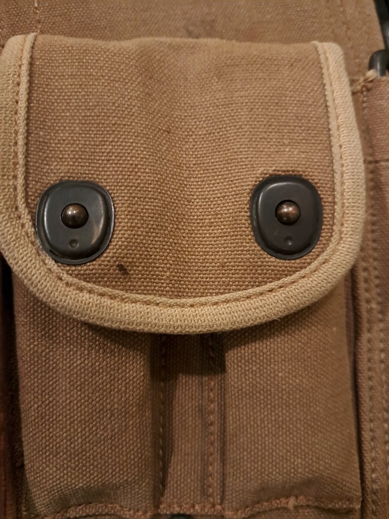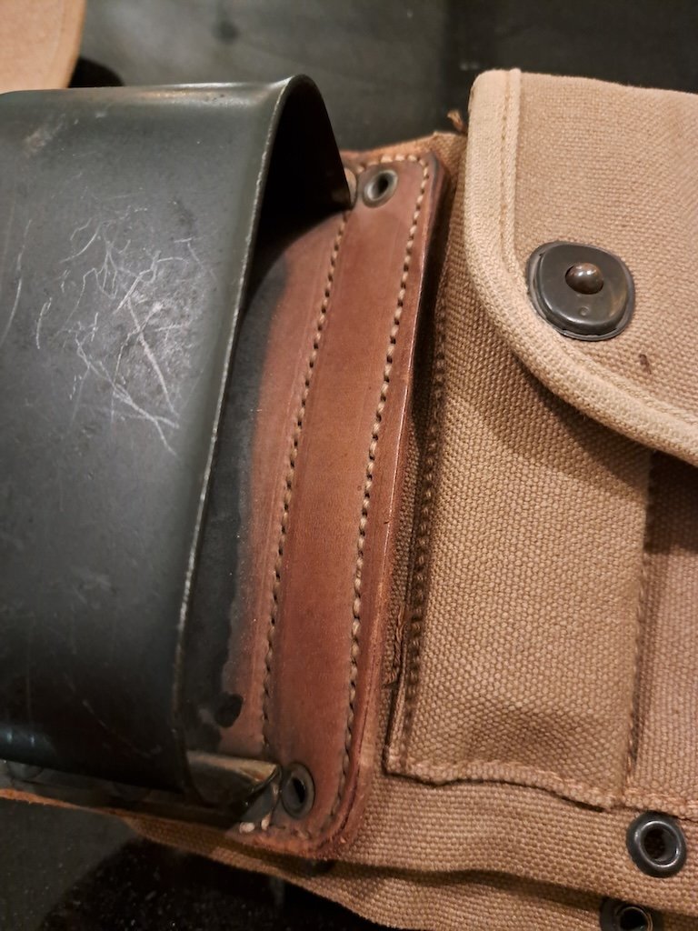 Beginner Posted March 14, 2025 Report Share Posted March 14, 2025 Hi I have a BAR ammobelt with the buttstock cup. I am offering it for sale to a friend but he feels it is a repro and not original 1918 vintage. The condition is too good according to him. I only have one pic (the belt is at my friends' for review so not able to take more pics now). What do you think? I do not really care if it is a a repro but would prefer not to sell if for a repro price if is genuine after all. Looking at similar belts for sale mine looks identical in my opinion, incl the LONG X-18 stamps (mine is 5-18). So are these genuine 1918 vintage or repros in your expert opinions? https://shop.joesalter.com/Original-U-S-WWI-1918A2-BAR-Ammo-Web-Belt-By-Long-Dated-1918 https://www.ima-usa.com/products/original-u-s-wwi-1918a2-bar-browning-automatic-rifleman-belt-by-long-dated-june-1918?variant=29470614650949 https://www.gunstar.co.uk/ww1-1918-u-s-army-ammunition-pouch-carrier-belt-for-m1918-br/Accessories/1637732 https://www.saracenexports.com/product/browning-automatic-rifle-bar-belt-1918-dated/ Link to comment Share on other sites More sharing options...