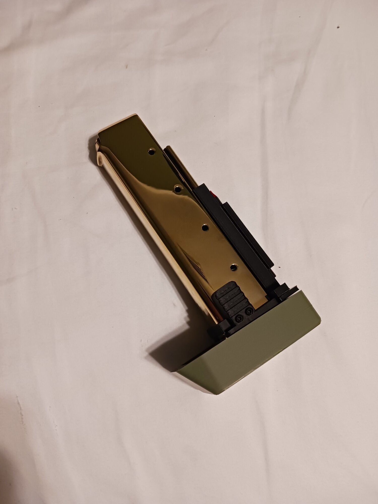 Gold1927a1 Posted September 14, 2025 Author Report Share Posted September 14, 2025 Got it from ebay user vennmodels. Ask him to 3d print the base solid for a real mag. Funny thing is the real mag fits better than the airsoft mag lol. Funny coincidence, I'm going to use all the same parts. If you let the parts sit in your cart for a few days you get auto offers for the parts a bit cheaper. We can work off eachother's ideas on how to make this thing work. I do have a little flux core welder than works great for thin metal, but screw build will probably work also. Any thoughts on reinforcing the clamshell? I already had the airsoft gun for years just sitting around and it feels pretty sturdy. Link to comment Share on other sites More sharing options...