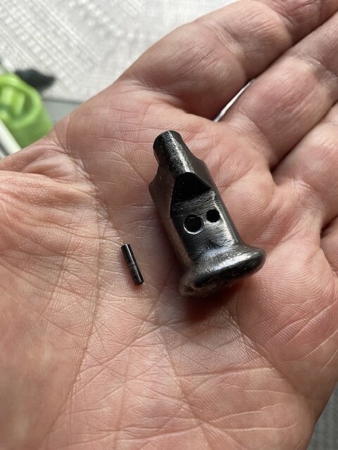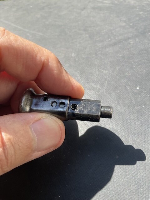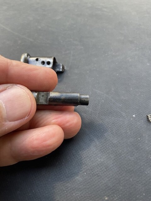 Planejack Posted August 28, 2025 Report Share Posted August 28, 2025 Hi all, I have this MP40 original Cocking Handle (Safety?) and it’s Post. It has the spring, but is missing its small bearing, as well as the pin. The pin that was with this is shown….but although a usable length and diameter…its ends are rounded, such that I don’t think it’s what would have been used. I would like to hear opinions as well as values. I corresponded with Dave, and he has given me his kind permission to post and sell my items. Link to comment Share on other sites More sharing options...