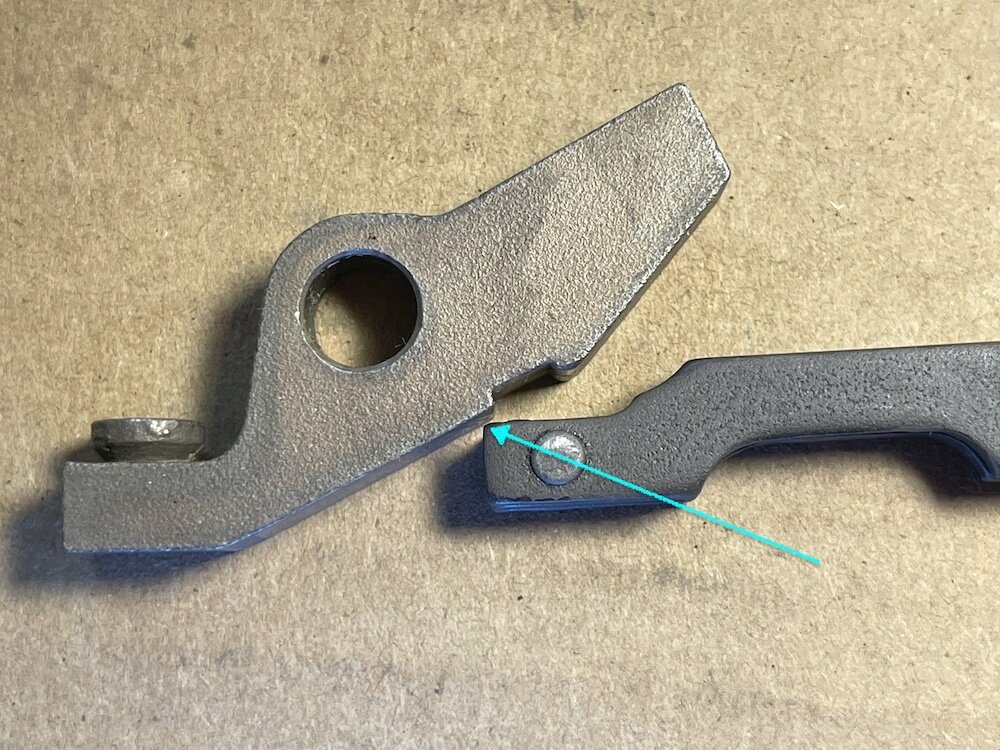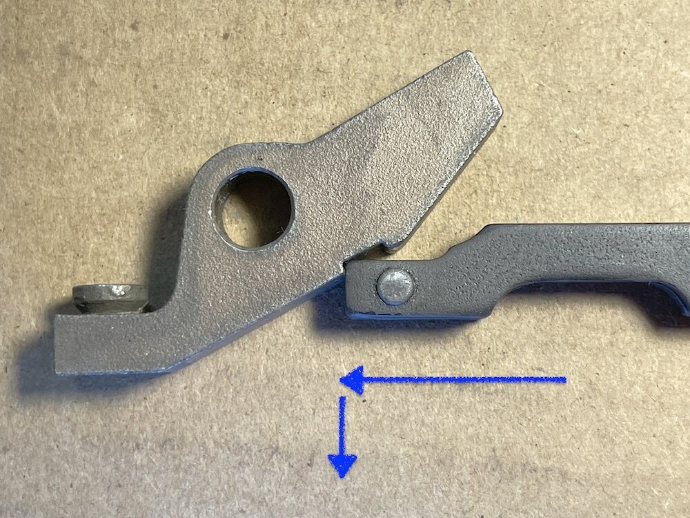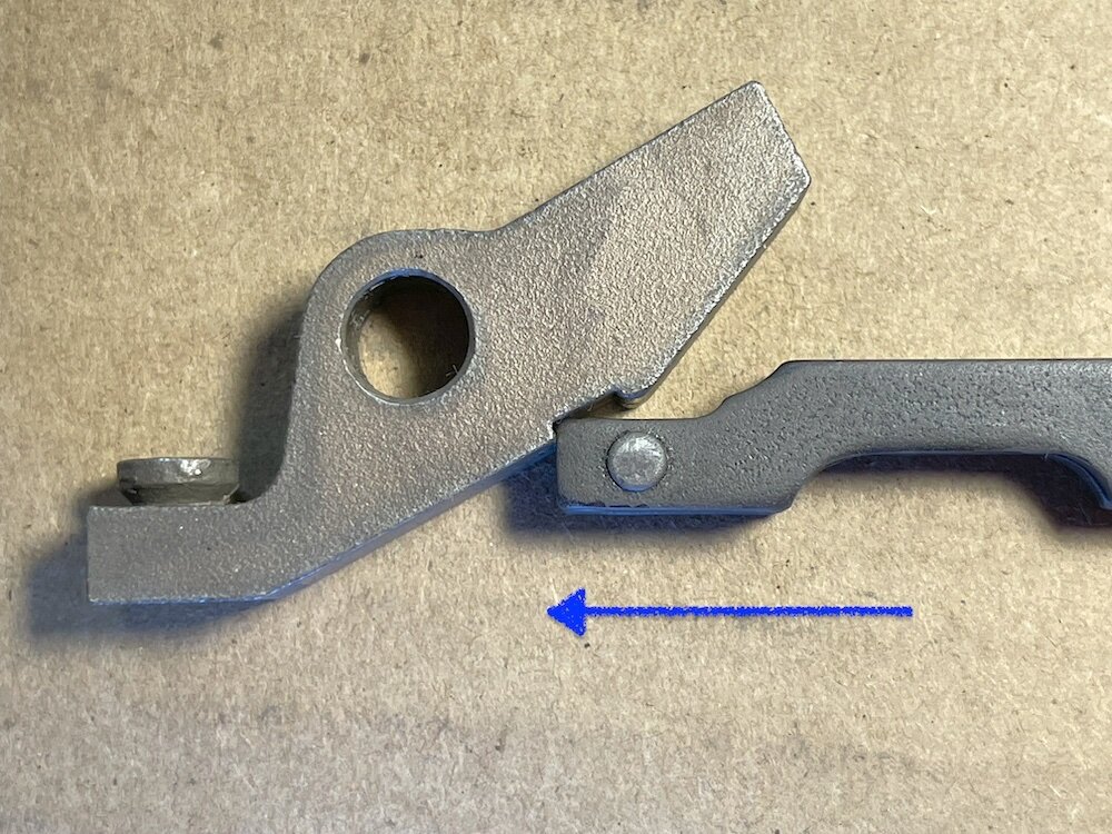 Jim in Texas Posted October 5 Report Share Posted October 5 As most 76/760 owners have come to realize, the trigger bar in this design tends to wear. Fortunately, Nav Gunner has made some new trigger bar and sear sets, and plans to make future production runs. However, he cautions that "life is life" and there's no guarantee with respect to future availability. So, how do you maximize the life of your trigger bar? I am not an engineer or a gunsmith, but it seems to me that a simple step might be not using the “semi” setting on the selector. Here is my thinking: When the gun is in “full,” the trigger bar pushes forward as shown here, which causes the sear to release the bolt. There is a lot of contact area between the trigger bar and sear. Additionally, the trigger bar and sear remain in contact with each other the whole time. I do not see a lot of opportunity for excessive wear when the selector is in “full.” The situation is different, however, when the selector is in “semi.” In that setting, the trigger bar initially pushes forward, which causes the sear to release the bolt. But then, the trigger bar moves down to disconnect from the sear. As the trigger bar makes this second movement, all the load between the trigger bar and sear is concentrated at the very top corner of the trigger bar, which then has to slide out of the notch in the hardened sear to perform the disconnect function. This top corner of the trigger bar is where we see the problematic wear. It seems to me that minimizing use of the “semi” setting on the selector would help avoid excessive wear on this top corner, which in turn would help to maximize the life of the 76/760 trigger bar. The “semi” setting could still be useful in some circumstances, but an experienced shooter might want to minimize its use and instead focus on trigger control to get singles or doubles. Thoughts or comments? Link to comment Share on other sites More sharing options...