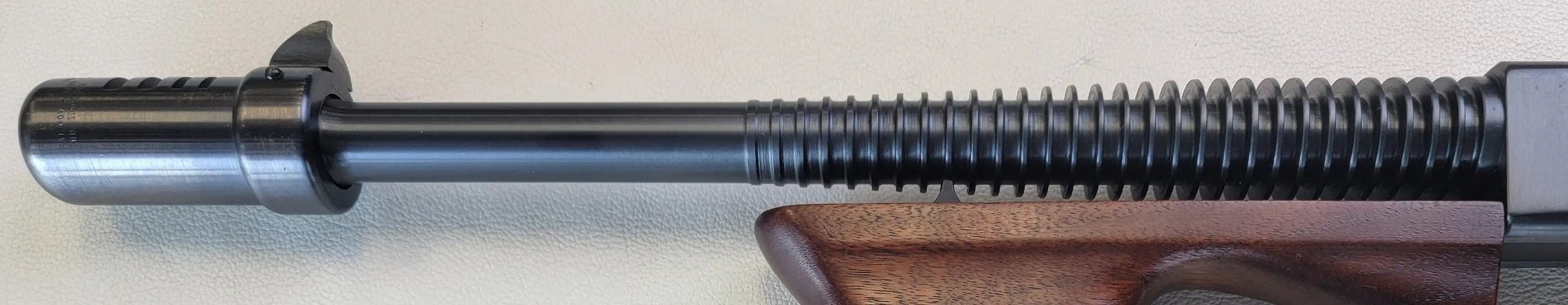 TD. Posted October 30, 2025 Report Share Posted October 30, 2025 Bob, A great photograph. Doug Richardson published this photograph long ago and stated it was a 1932 Ordnance Department photograph. I have the complete photograph. The information block at the bottom right hand corner of the photograph is marked "II/I/32" in Times New Roman or similar font. I believe this marking is where Doug decided it was a 1932 photograph. And he may be correct. Isn't this about the same time frame the Type 2 compensator was introduced? Note the top barrel fitted for the Type 1 Compensator has 29 fins. This is exactly the type of barrel you would expect to find on an original 1921A or a 1921AC with a Type 1 Compensator. The bottom barrel has only 28 fins and is threaded for a Type 2 Compensator. My guess is this is an early production or experimental Remington barrel for the Thompson submachine gun. It is marked "Proposed Type" in the bottom right hand corner description. Note how the Type 2 compensator appears void of any markings, another indicator this is an early picture (and compensator). I believe most, probably nearly all, of the Remington production barrels have 29 fins. I don't disagree that an original 1921A barrel with the ring front sight cannot be fitted with a Type 2 compensator. But I also don't fully accept this statement as 100% absolute. What I will state is it makes no difference as to originality of a Colt Thompson as long as the work was done by or for Auto-Ordnance Corporation in the 1930s. What I noticed over the years is the witness mark on the barrel collar on some Colt's with Type 2 compensators are a good indicator the barrel has been updated by Auto-Ordnance to fit a Type 2 compensator. Are the Colt's with "new" barrels any less original? No. Shown below is a 12,000 Colt with what I believe to be an updated barrel. Note how the index mark on the barrel collar does not go across the entire barrel collar and appears to have been applied after the barrel was installed. Note this barrel has 29 fins. What does all this mean? To me, it is just another inspection point on the many Thompson submachine gun variations. The quality of reproduction/replacement barrels are very good today. I have to give a hard look at the finish of the barrel and if the wear on the receiver, wood and compensator match the wear on barrel. All comments welcome! Link to comment Share on other sites More sharing options...
