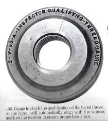 Arthur Fliegenheimer Posted October 30, 2025 Report Share Posted October 30, 2025 Hill has this barrel thread gauge (see below) in TUTB that is described as a tool enabling assemblers to match up the witness mark on the barrel to align with witness mark on receiver. Ostensibly this would eliminate anything but near perfect alignments using factory barrels. The question is whether this gauge is of the Colt era TSMG or WWII Savage/AOC era. But if this was not available or used before WWII why not if it is near foolproof simple method? The above A barrel had the original ring sight pin cove machined down before the new threading. Is the new cove for Cutts Type I pin visible on the underside of the barrel as is seen on barrel B? Link to comment Share on other sites More sharing options...