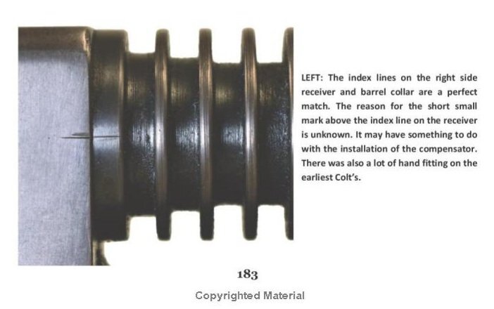 TD. Posted November 7, 2025 Report Share Posted November 7, 2025 Arthur, AOC's difficulty in removing 1921A barrels without damaging them was a thing in 1926 not by 1936 when #147 was sent back to AOC/Fenn for the Cutts Type II fitting. There is nothing to suggest Auto Ordnance employees needed to remove barrels after Fenn Manufacturing became a vendor installing compensators. With the availability of 1932 manufactured barrels, Fenn must have been routinely removing 1921A barrels to install the new barrels made for the Cutts Type II Comp. While the customer could certainly opt for a new barrel during the compensator upgrade program at AOC, there is nothing to indicate a new barrel was mandatory. It is not a certainty that #147 barrel wasn't removed when the Cutts Type II was installed on its 1921A barrel. There is no reason to believe Fenn Manufacturing would not use the "clever device" they invented in 1927 that allowed compensators to be installed on Thompson submachine guns without removing the barrel. Your pics of Colt Chopper (Jack Meador) #147 barrel/receiver witness marks are within the same alignment as new 1932 barrels fitted with Type II Cutts Compensators. The picture from my book at the bottom of page 183 shows the perfect alignment of the index marks on the original 1921 barrel to the receiver of NO 147. The Fenn installer's guide mark is a new wrinkle as well. A new winkle, maybe, but we do not know if the mark was made by Fenn Manufacturing or during the manufacturing process at Colt's for this very early Thompson submachine gun. This mark is one of the many reasons I have been searching for NO 190, the sister Colt at the Cleveland Police Department. Gordon Herigstad reports this Colt is also now a 1921AC. My guess (and only a guess at this time) is Cleveland Police Department sent both Colt's to AOC for the compensator upgrade. If I can find NO 190, I will certainly try to get the owner to do a Freedom of Information Act request. The Cleveland PD wanted the brand new Type II Cutts fitted to the by then (1936) fairly used 1921A barrel because the $20 added cost of the 1932 barrel was prohibitive? There is no indication any AOC customers ever specified which type of compensator they wanted installed. There is also no indication or documentation a new barrel was required for a compensator install. Yes, a new barrel was available, if necessary, i.e. for a budged or ringed barrel, or if the customer so specified, but no requirement since Fenn Manufacturing invented the "clever device." And for the record, $20 was a lot of money in 1936! Surely there was no consideration in maintaining the original barrel because of the obscure matching serial number. The barrel on NO 147 with a Type 2 compensator installed in 1936 is the original barrel that left Colt's in 1921. The barrel not only has a wedding band for the 29th fin (found on a number of early Colt's) and is numbered on the chamber shoulder and plainly visible when looking into the chamber. Now, I do believe if an early Colt was sent to AOC because the barrel needed to be replaced (and for a compensator upgrade too) AOC and/or Fenn Manufacturing would not number the chamber shoulder with the matching assembly number. For one thing, they would not have the same marking tools used by Colt's in 1921. That flag on the number "1" in the number 147 seen in the chamber area of NO 147 is without a doubt from the Colt's manufacturing process (picture also included in the story about NO 147). Attached is a picture you should be familiar with: Note how the number "1" has the flag and the number "4" is very pointed at the top. No doubt the same marking tools as found on the original barrel of NO 147 (page 186). Thank you for purchasing my book. Link to comment Share on other sites More sharing options...
