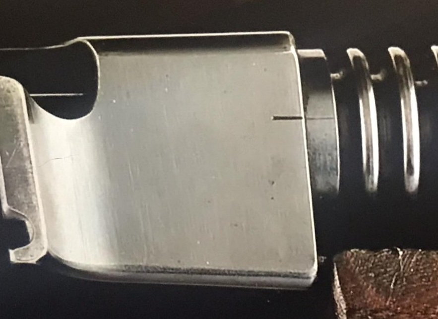 Arthur Fliegenheimer Posted November 7, 2025 Report Share Posted November 7, 2025 Never suggested the customer who returned their Colt to AOC was obligated to spend $20 for the new barrel made exclusively for the Type II Cutts. But AOC installed many more Type II Cutts on in stock Colt TSMG and previously sold Colt TSMG returned for the Cutts. After 1932 AOC was making the decision for customers on which Type Cutts to install. Which method of Cutts installation was the better design and required less time? Machining down the 1921 muzzle boss to eliminate the rIng sight pin grove/cove to accomodate the Type I design - OR - threading the muzzle boss on a 1921A barrel or new 1932 barrel for the Type II Cutts? Did Fenn ever respond to Chuck's inquiry with a picture or description of this "clever device"? Is it your belief Fenn threaded the muzzle of the new 1932 barrel and fitted the Cutts Type II with the new barrel on the receiver after swapping out the 1921A barrel? When did AOC hit on the same practical and safe method of barrel removal that Doug Richardson manufactured? See photo below. Not disputing Jack Meador's Colt #147 has the original 1921A matching serial number barrel. As to the "perfect" alignment, judging by the above picture , the barrel line is between the receiver witness line and the scribe line. If this is not the case when viewing the Colt in person then the photo isn't a true representation. Why the scribe unless barrel was off and on for Type II Cutts sight alignment where the scribe marked an initial position where the sight was too far to the left when barrel was torqued down? No visible additional scribe mark on Colt 1921A #103 receiver. Doesn't seem this was a Colt practice on the earliest serial numbers. See photos below. Link to comment Share on other sites More sharing options...