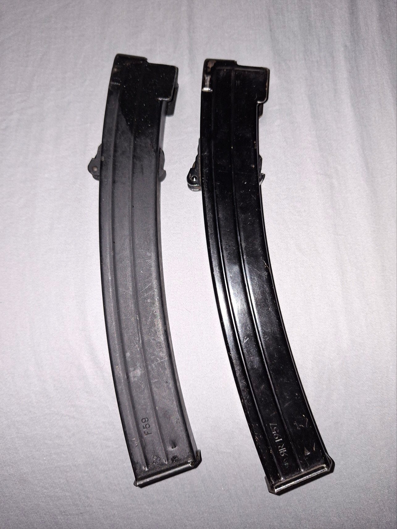 Rekraps Posted January 12 Report Share Posted January 12 On 1/10/2026 at 6:37 PM, 1gewehr said: Nope. Those are British military issue Sterling magazines. Noy really rare, but less common in the US than the export version made from spot-welded sections. They were made in two halves, linear welds along the front and rear. Usually done so well that the body looks like it was an extruded tube! Left side should be stamped "Magazine 9mm L1A2". When Apex had boxes of Sterling mags at KCR, I did my best to snag the British military ones! The ones I have, all NOS or almost new are very well constructed to your point above. Link to comment Share on other sites More sharing options...